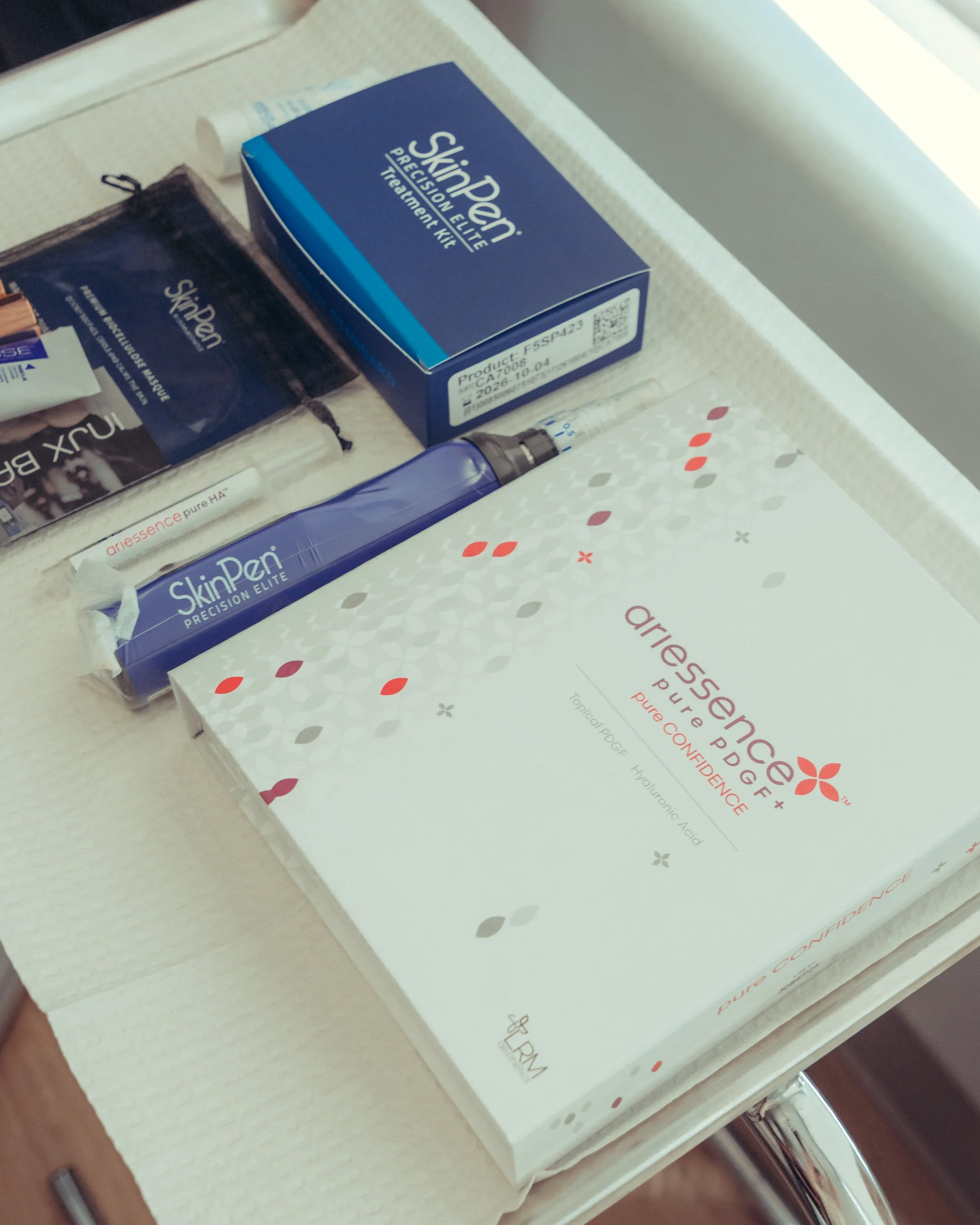 Microneedling creates controlled micro-injuries in the skin, stimulating collagen and elastin production. On its own, microneedling is already a favorite for improving fine lines, acne scars, and texture. But when we apply PDGF during the treatment, results are significantly amplified.