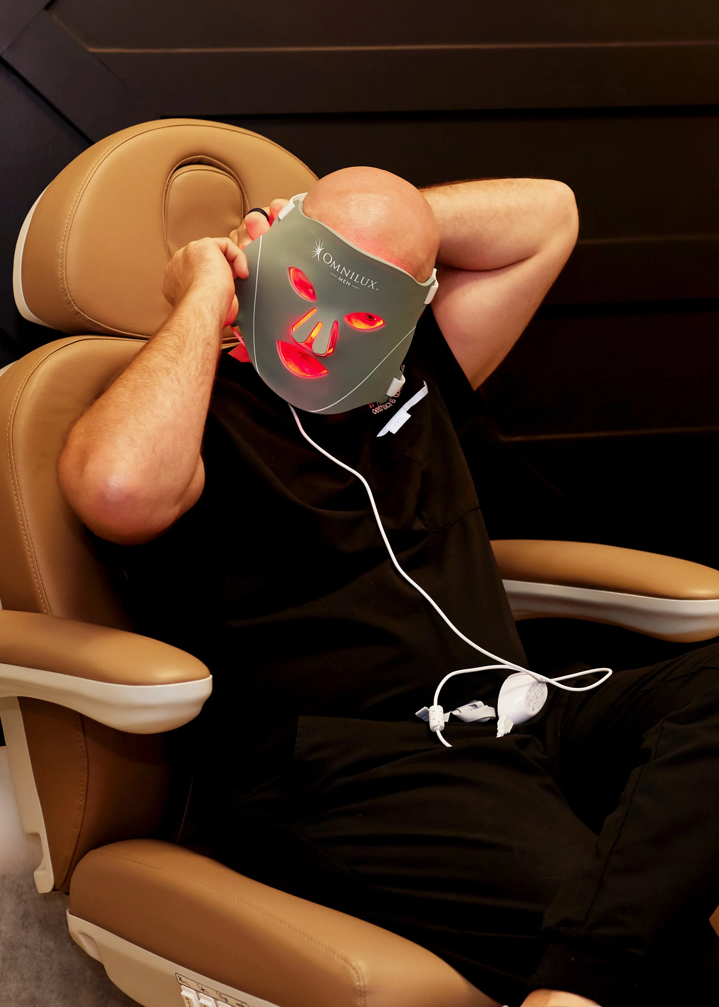 If you’re new to having a red light therapy mask or have specific skin concerns, consulting with a skincare professional for personalized recommendations is always a great idea! At Injx Bar, our favorites, and ones that we have available in our office, are Omnilux Clear and Omnilux Contour. And our amazing team of experts is available to guide you in selecting the best red light therapy mask and integrating it into your skincare regimen!